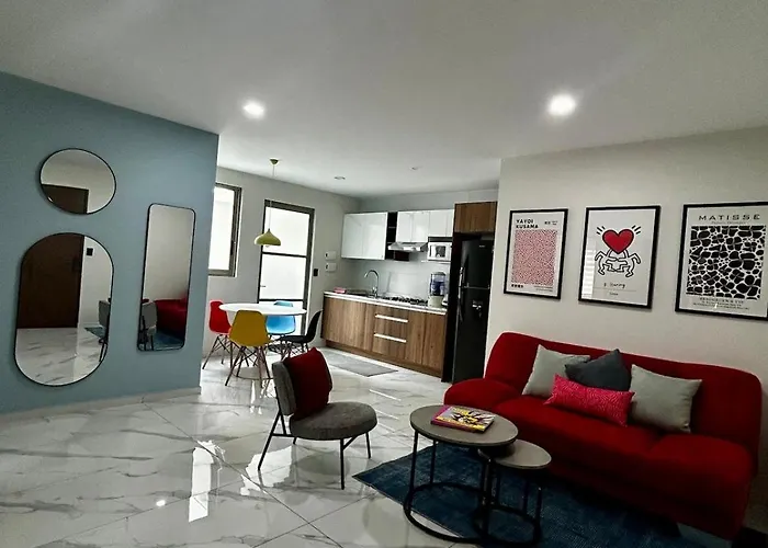 Ces logements Estadio Gnp, Palacio De Los Deportes, Aicm Mexico est situé dans le voisinage de "Venustiano Carranza" à Mexico, à 5 minutes de marche de Glorieta De La Federal. L'appartement offre un parking privé sur place et tout le confort moderne comme un Wi-Fi.